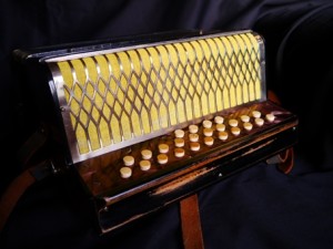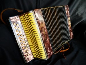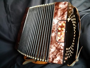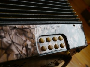 Hohner LiliputHohner Liliput in CF, now gone to a new owner.  Two voice, 2.4 row. Was restored, de-clubbed and tuned to concert pitch. Pallets re-faced, reeds cleaned, revalved, rewaxed. Bellows tape replaced on rear and under sides, with new bellows gasket. Grille cleaned and cloth replaced (with colouring to match the bellows).  Bass plate and keyboard end french polished.