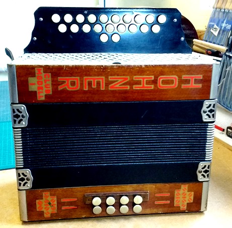 Hohner Club Modell I in CF. Lovely old 1930s instrument with a mellow sound and wonderful deep bass. This instrument was converted to DG, with hand finished reeds from Harmonikas.