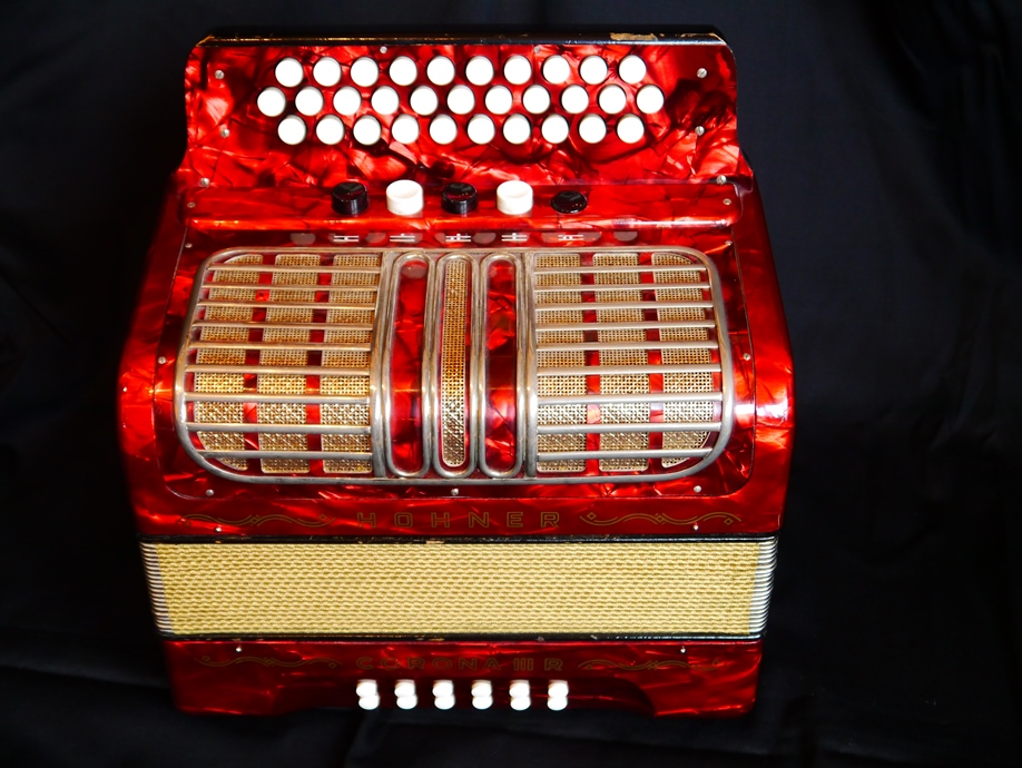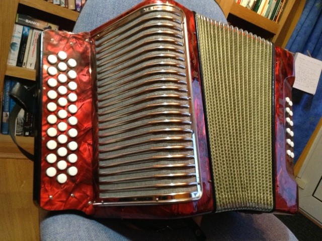 A decent mid range Hohner Carena IIIM piano accordion, full size, with the lovely Hohner sound. I refurbished the bass end (clean up, revalve, rewax, tune) after which it sounded marvellous, with a deep honking bass when all five reed sets were called into service. On the right hand it is a three voice instrument (LMM), with five registers to mix and match the sound. I sorted out the various issues with loose valves and reeds and tuned up. The buyer wanted me to service their eBay acquired PA but when I showed them this instrument they changed their minds. That is the problem with buying accordions from eBay. You are never quite sure what you going to get unless it is supplied by an instrument vendor or repairer.