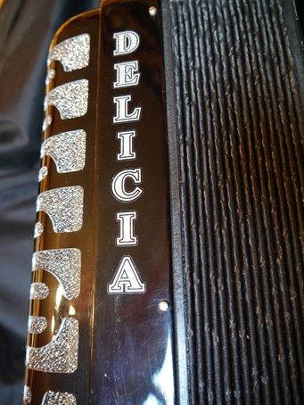 Delicia Arnaldo 23 piano accordion, 72 bass, three sets of reeds, seven couplers, two bass couplers. (SOLD) Made in the Czech Republic. Please see the demo video.